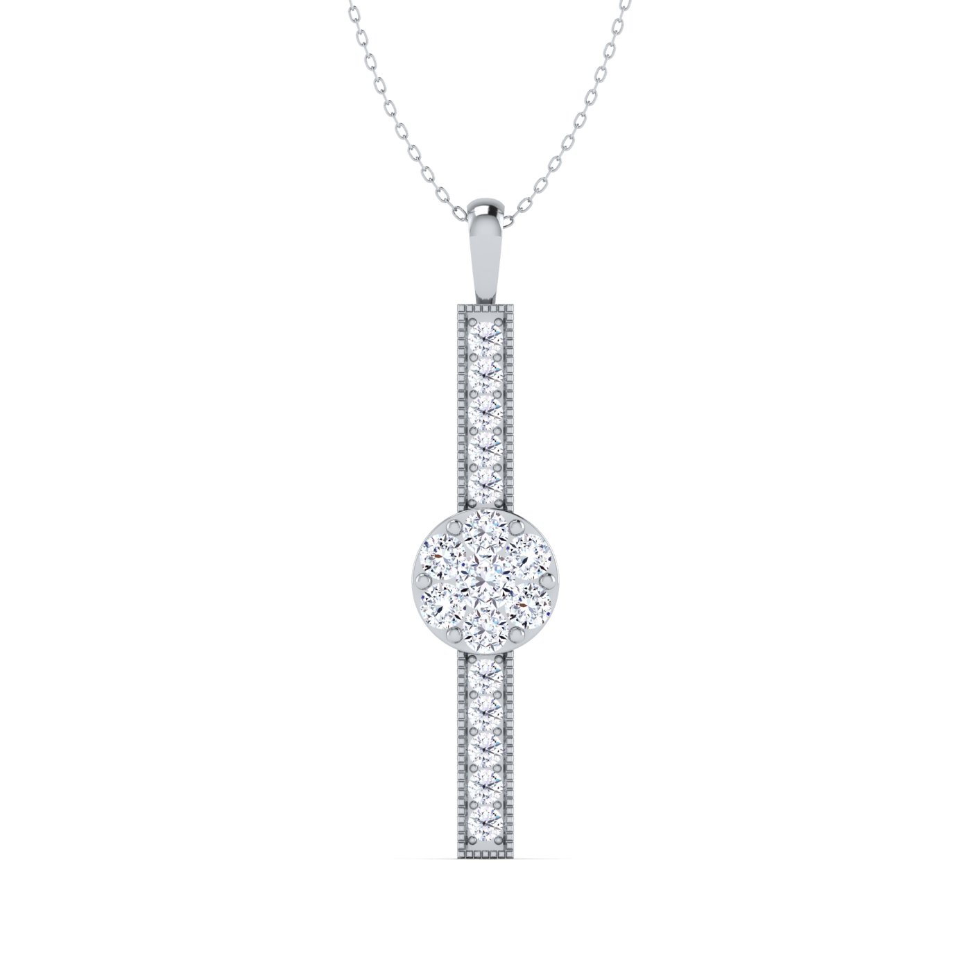 This brilliant bar shaped natural diamond classic pendant is made with absolute care to shine your elegance even more. This stunning art of diamond pendant comes with gold metal chain in 14K/18K, white/yellow/pink color.