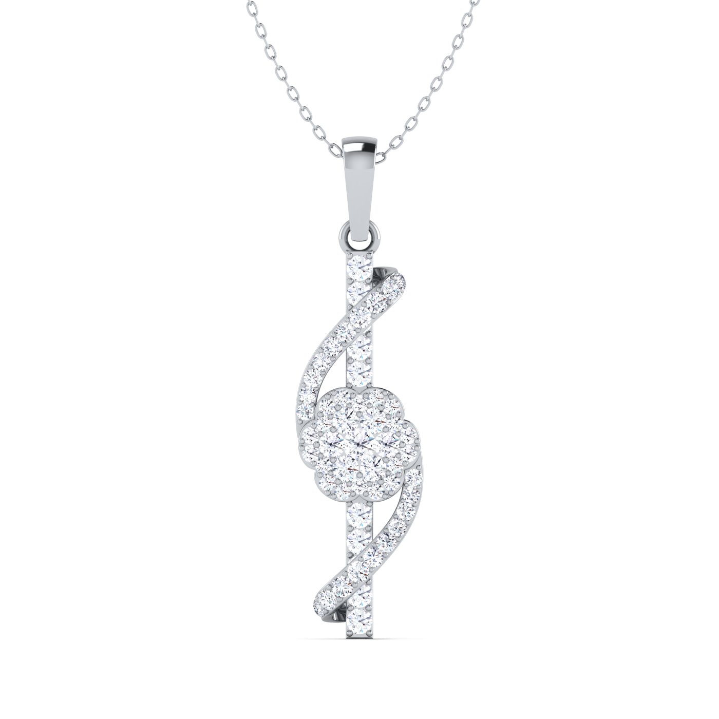 This women's diamond fashion pendant is unique and eye-catching, featuring diamonds over this stylistic pendant design. This pendant comes with Gold Metal Chain in 14K/18K, white/yellow/pink color.