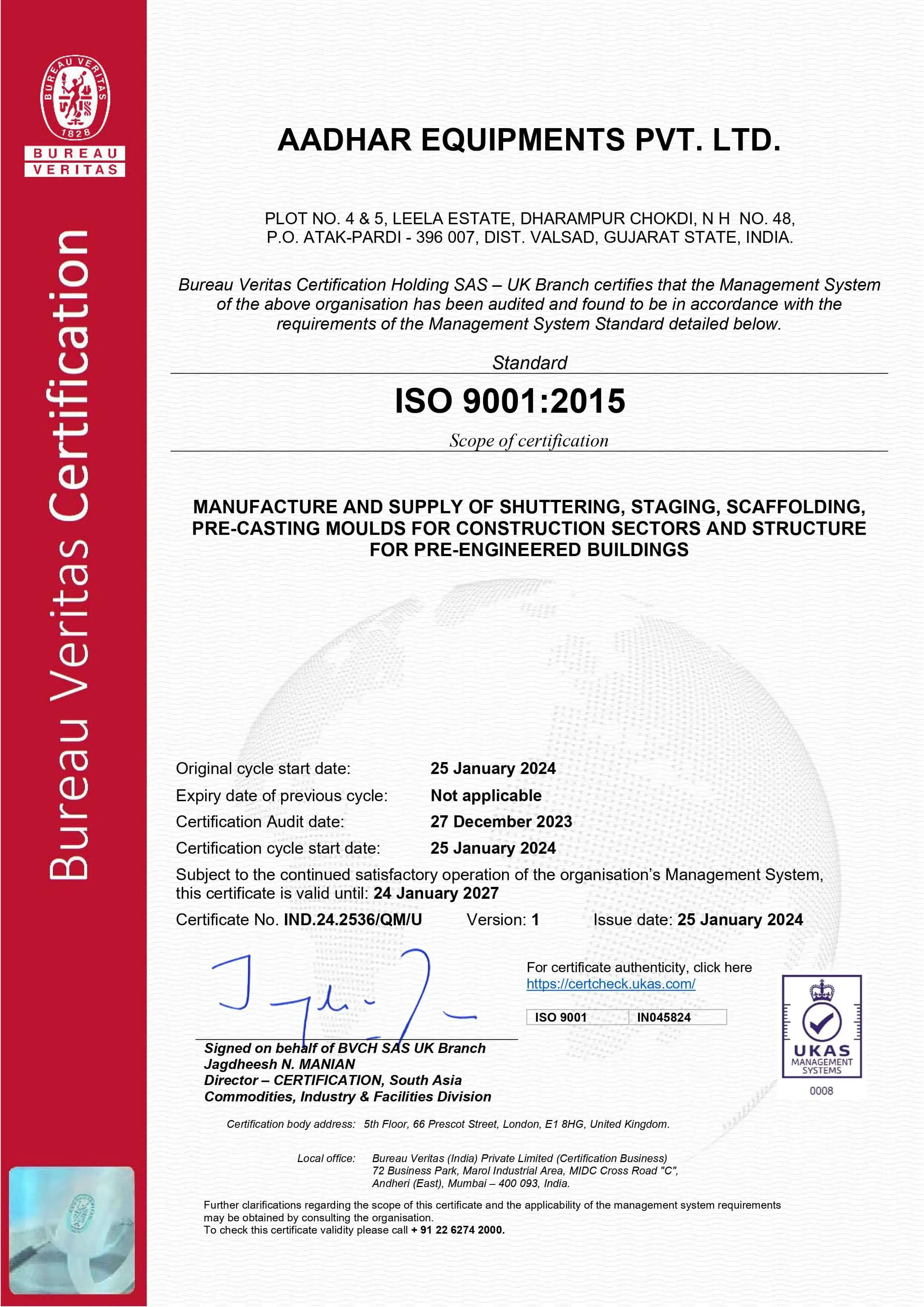 Our Certificate